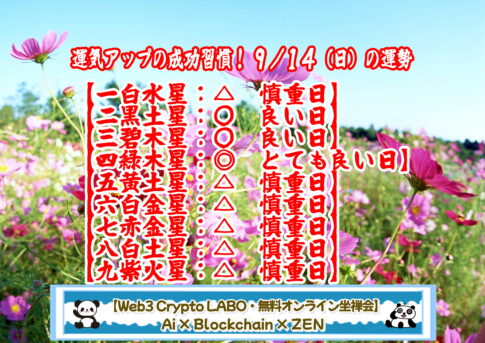 【今日の運勢】【運気アップ!9/14(日)の運勢・コスモorカオス】 今日は「コスモスの日」ホワイトデーからちょうど半年で二人の愛を確認しあう日。コスモスの由来は宇宙の秩序を意味する「コスモ(cosmo)」 一方、対義語は混沌を意味す...