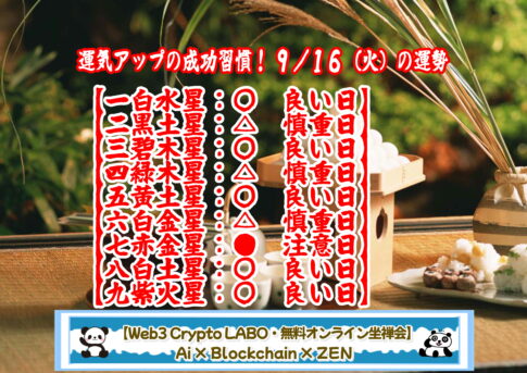 【今日の運勢】【運気アップ!9/11(木)の運勢・メリハリ?】 古来より日本人は、普段通りの日常を「ケ」の日、祭礼や年中行事の日を「ハレ」の日と呼び、日常と非日常を使い分けていました。「ケ」と「ハレ」の節目を交互に繰り返すのが人生。身...