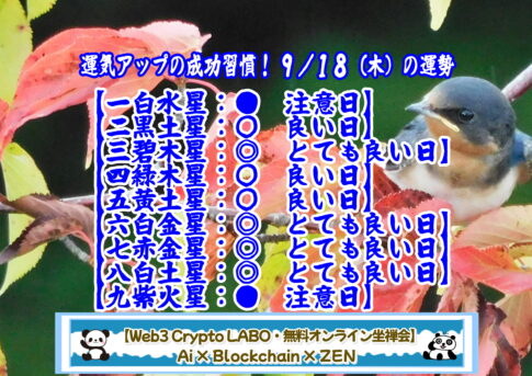 【今日の運勢】【運気アップ!9/18(木)の運勢・野分のまたの日?】 9/18から二十四節気「白露」の末候で七十二候の「玄鳥去(つばめさる)」の時候。燕も南へ去っていく頃です。「野分(のわき)」は台風の古称。秋分の日ももうすぐです。台...