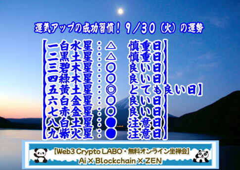 【今日の運勢】【運気アップ!9/30(火)の運勢・月日は百代の過客!】 中秋の名月も過ぎ、満ち欠けを繰り返す月を夜空に眺める楽しみは、時の流れが月の表情にありありと映るからかもしれません。今日が9月の晦日。なにか新しい兆しも見えてきま...