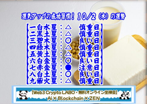 【今日の運勢】【運気アップ!10/2(木)の運勢・旬ではないのに?】 昔の旬からは二か月ほどずれていますが、十(とう)二(ふ)の語呂合わせで、10/2は「豆腐の日」。 豆腐は初め、僧侶の食べ物でしたが、室町時代から庶民に広まったと言わ...