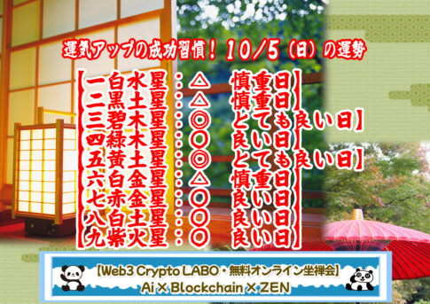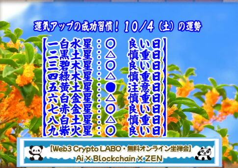 【今日の運勢】【運気アップ!10/3(金)の運勢・天地の運気をもらおう!】 今日から二十四節気「秋分」の末候で、七十二候の「水始涸」(みず はじめて かるる)の時候。これは稲穂の刈り入れのために、田から水を少なくする頃という意味で、い...